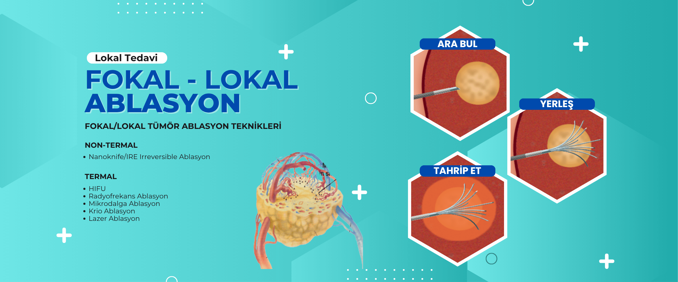 Lokal veya diğer kullanılan tanımıyla Fokal Tümör Ablasyon tedavileri sadece kanser hücrelerini hedef alır, çevre sağlam dokulara zarar vermez.